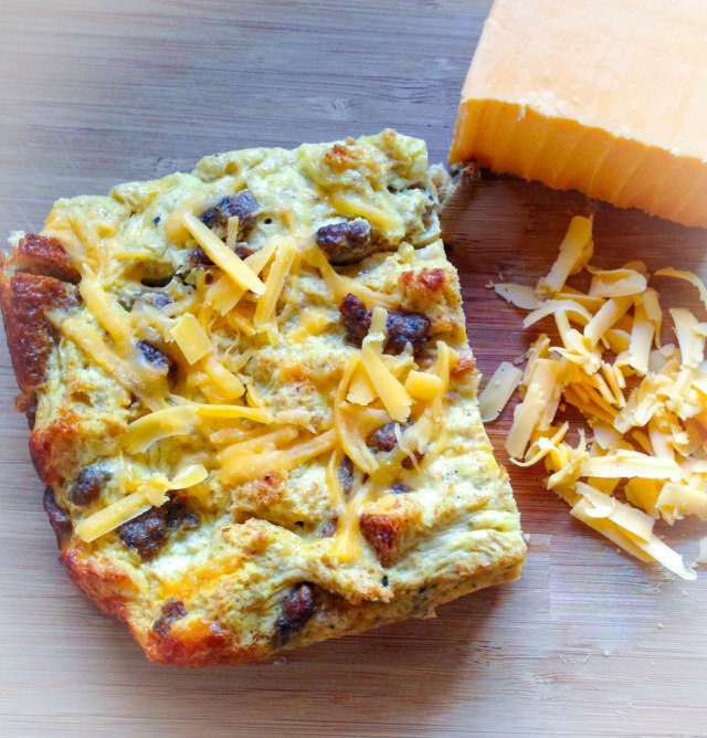 Although the menu for my family’s Christmas breakfast varies from year to year, egg casserole is a staple that has earned a permanent spot in the buffet lineup. Fluffy in texture, hearty in nature, and loaded with sausage and cheese in every bite, egg casserole is absolutely divine. A few modifications to the original recipe transform this holiday favorite into a healthy everyday meal known as Healthy Egg Casserole. In this recipe, the key players (eggs, whole milk, white bread, pork sausage, and cheese) have been replaced with their healthful counterparts (Egg Beaters, almond milk, whole wheat bread, turkey sausage crumbles, and fat-free cheese); however, the end result is every bit as flavorful.