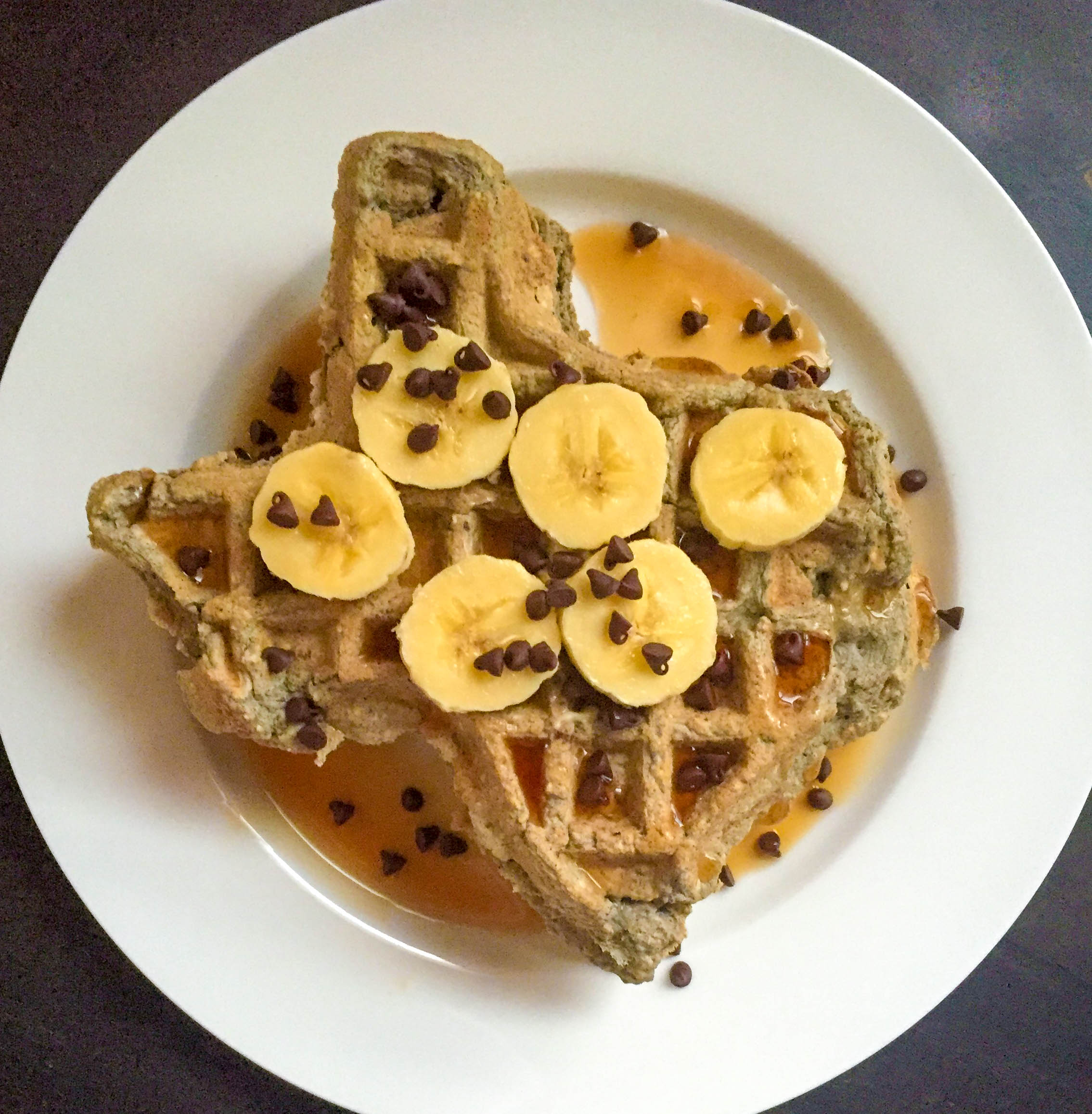 These came about for two reasons.  First, I wanted to create a breakfast recipe that would power me through dreaded finals week and that I could prepare ahead of time.  Second, Texas/OU weekend is upon us in Dallas, and I could think of no better way to signal my Texas pride than by putting my Texas Waffle Maker to use.